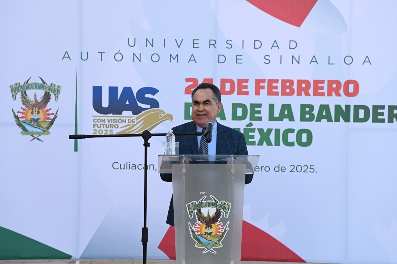 Al conmemorar el Día de la Bandera, el Rector de la Universidad Autónoma de Sinaloa (UAS), doctor Jesús Madueña Molina, exhortó a enarbolar también las banderas de la educación de calidad, la unidad como mexicanos y universitarios, la defensa de la soberanía y la búsqueda incansable de una paz duradera que nos darán fortaleza para seguir avanzando en todos los terrenos.