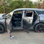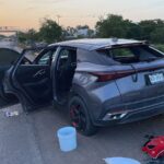 A unos metros del lugar, pasando el puente peatonal hacia el norte, fue localizada una camioneta SUV Omoda gris, modelo reciente, en cuyo interior se encontraron granadas, municiones, armamento de grueso calibre y equipo táctico. Ambos vehículos, tanto la motocicleta como la camioneta, cuentan con reporte de robo.