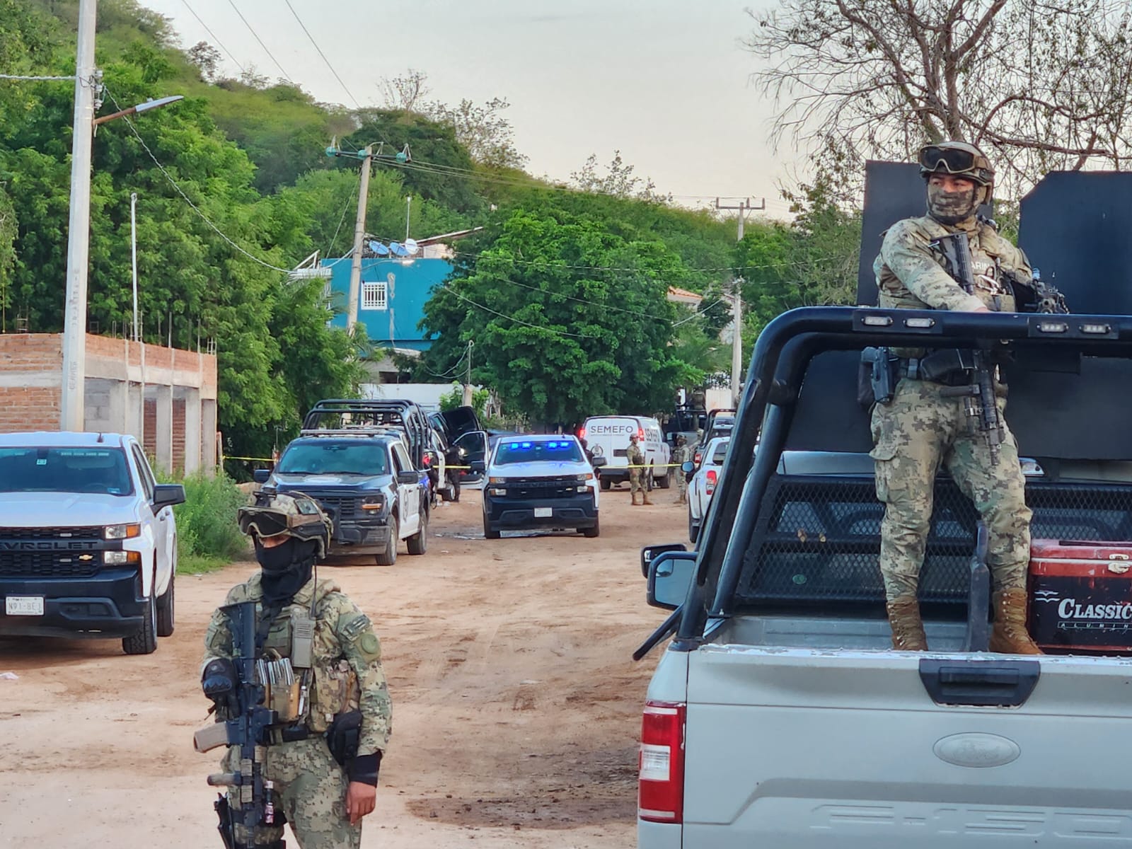 Peritos del Servicio Médico Forense permanecen en la zona realizando el levantamiento del cuerpo y recabando indicios, mientras que los operativos continúan en diferentes puntos de la sindicatura.